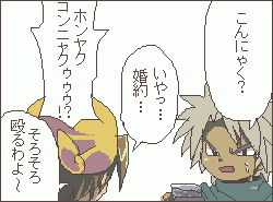 初対面 上の一枚は絵日記から使い回しリサイクルしたものです。 間違えてキャラットさんの服がピカピカ服のに なってしまっていますがどうかお見逃し下さい。その2に続きます。 ≪戻 ■ 進≫