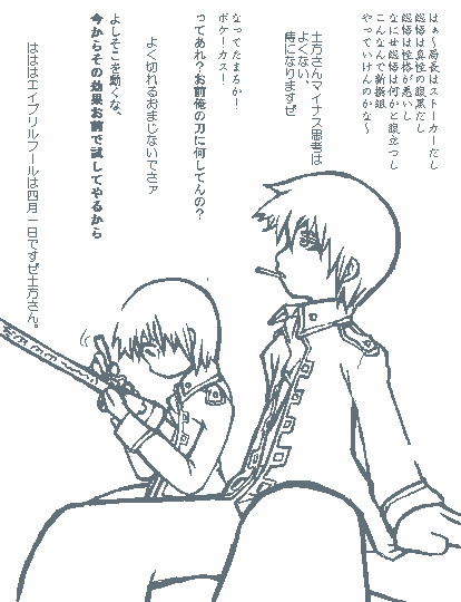 真撰組、を新撰組に。よく斬れる、をよく切れるに間違えていました。 相変わらず凡ミスが多いです。戻る