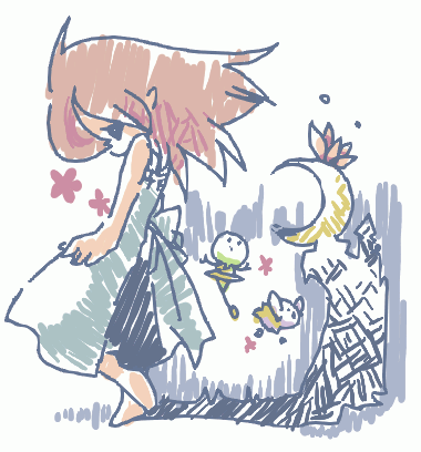 ≪戻 ■ 進≫ 本当は走らせようとしたものなのですがすぐ飽きました。 背景はいずこに…。 アラビアン…に見えればいいのですが。 なんの変哲もないクチ〜トさん。 妙な表情のサーナイトさん。耳(?)を見事に描き忘れ…。 メリー…プさん? すいさいにがて 私にとってウインドウズ初期付属の「ペイント」は もっとも使いやすいおえかきソフトです。 ≪戻 ■ 進≫